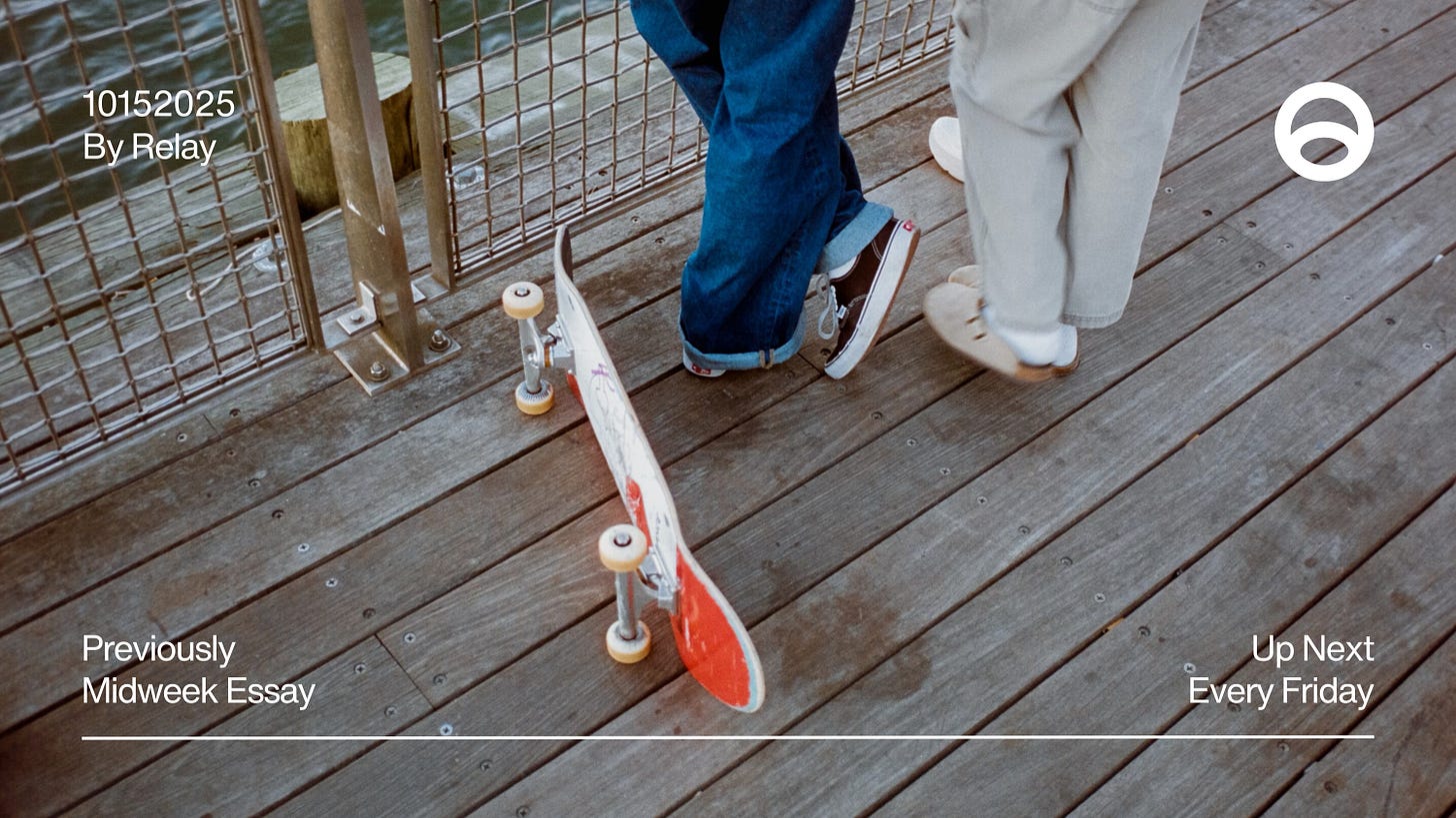 We’re not here to “fix discourse” or “build a better internet.” Relay is just our attempt to riff on what we’re already talking about at happy hour without feeling like we’ve been hit by a content truck. Some analysis, some memes, call it a day.