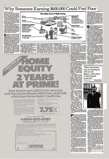Feeling Poor on $600,000 A Year (New York Times, April, 1987)