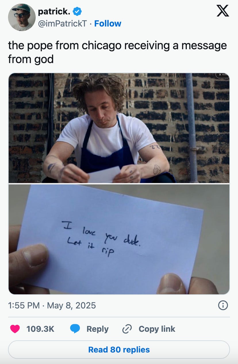 We regret to inform you: the monoculture is back. For a few days at least, it felt like every screen in every timezone was showing the same handful of images: celebrities trying not to get canceled by fumbling the Met theme, papal robes, and grainy footage of things on fire.