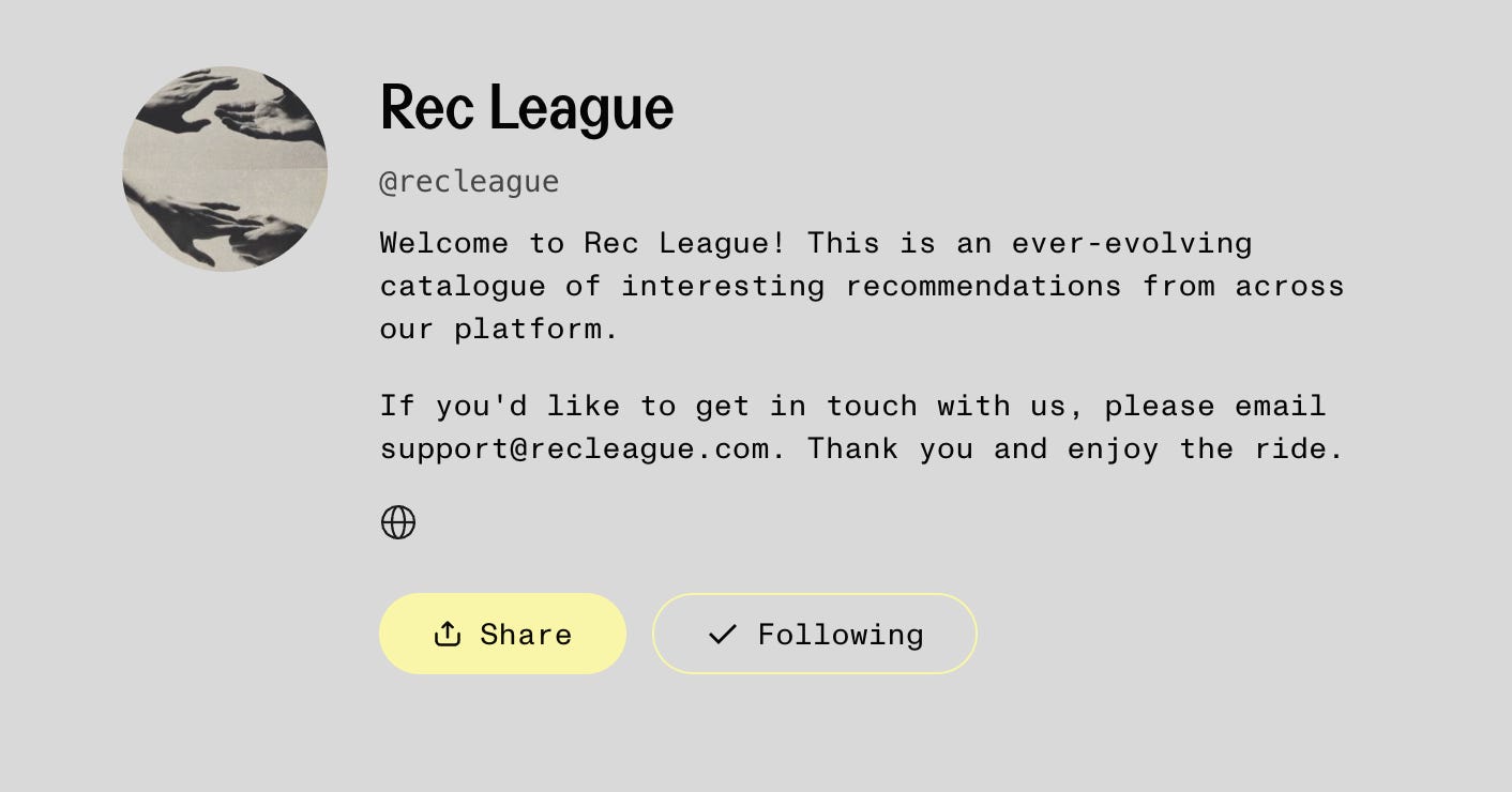Imagine your favorite substacker’s holiday listicles but in new-age app format. Your content could be a rec from your favorite celeb or your high school buddy. That combination feels like a new angle on this genre of social medium and as online community shifts more and more towards a human-centric attitude (it will undoubtedly continue to do so) this might just blow up.