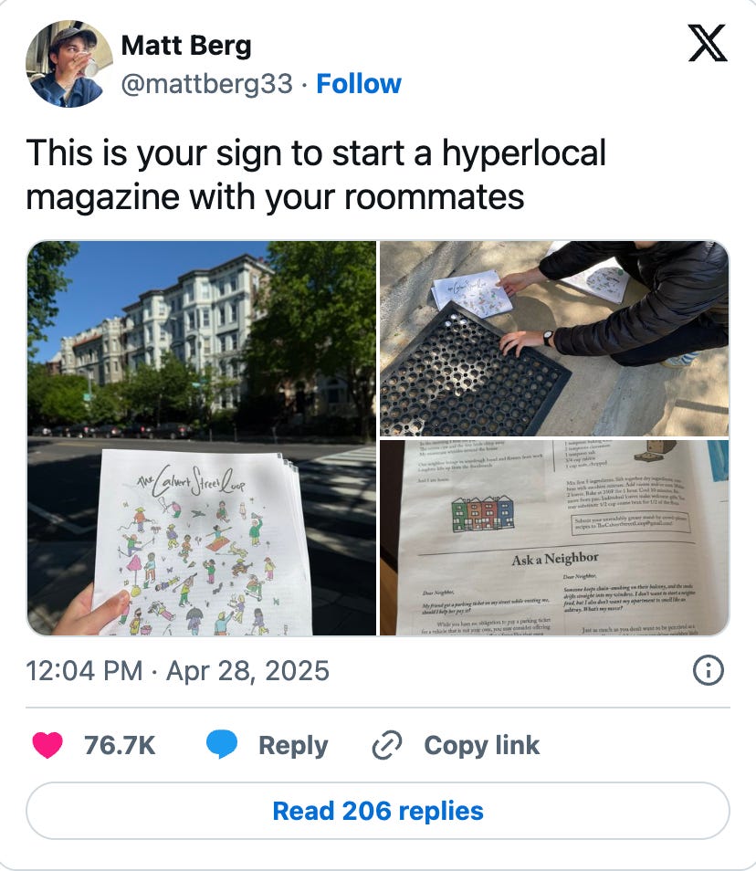 ICYMI - we hope you took Ian’s midweek advice and didn’t save too much of yourself for the preekend. I (James) had mixed results. Work stress crept in (shoutout dodging layoffs!), and I found myself rushing through the week instead of noticing the good stuff as it happened. But we’re back in the saddle today, trying (yet again) to show up for more than just Friday.