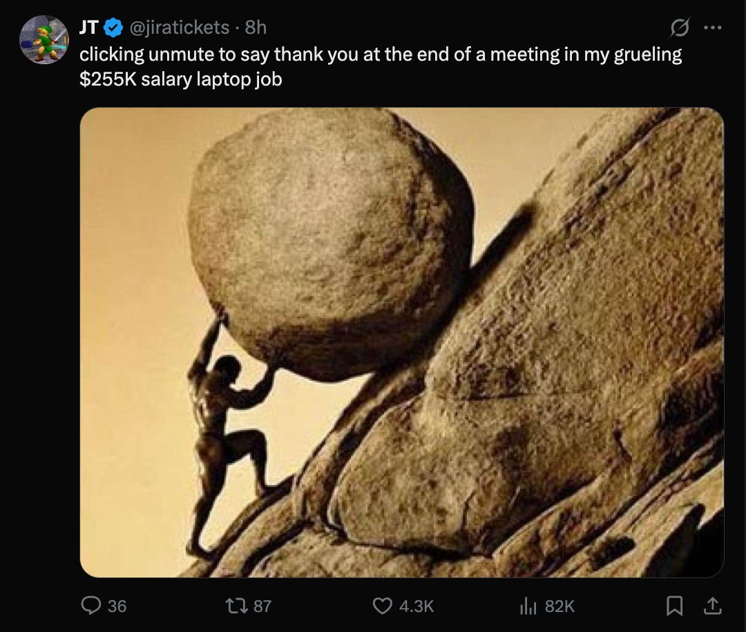 I recently sat with a newly hired forward deployed technology brother for a coffee chat. You could tell from the way he talked about the role, the team, and the company that he has an insatiable desire for the job. There was nowhere on earth that he’d rather be; he’d finally summited the main questline of growing up, doing well in school, and getting a great job. In contrast, that same week my mentor had moved onto a new company after 10 years and another friend on the team had freshly tendered their resignation.