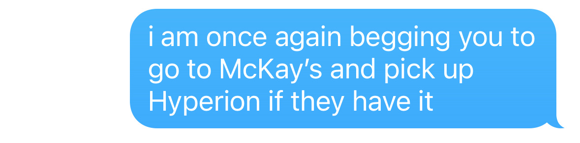It’s weird and haunting while having more to say about faith, grief, and technology than anything else i’ve read in the last 5 years, all the while somehow avoiding veering into pretentious territory (don’t let the John Keats themes scare you off).