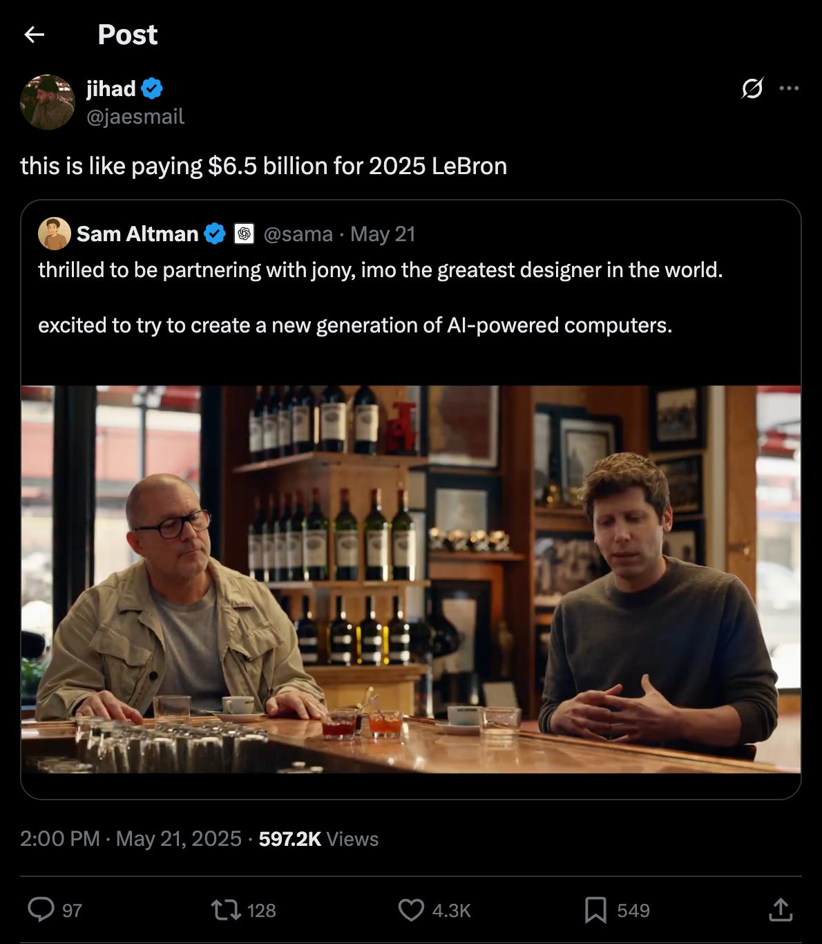 X users were eating up the Jony Ive’s & Sama collab. One of our favorites went something like “this is like getting lebron for 6.4 billion.”